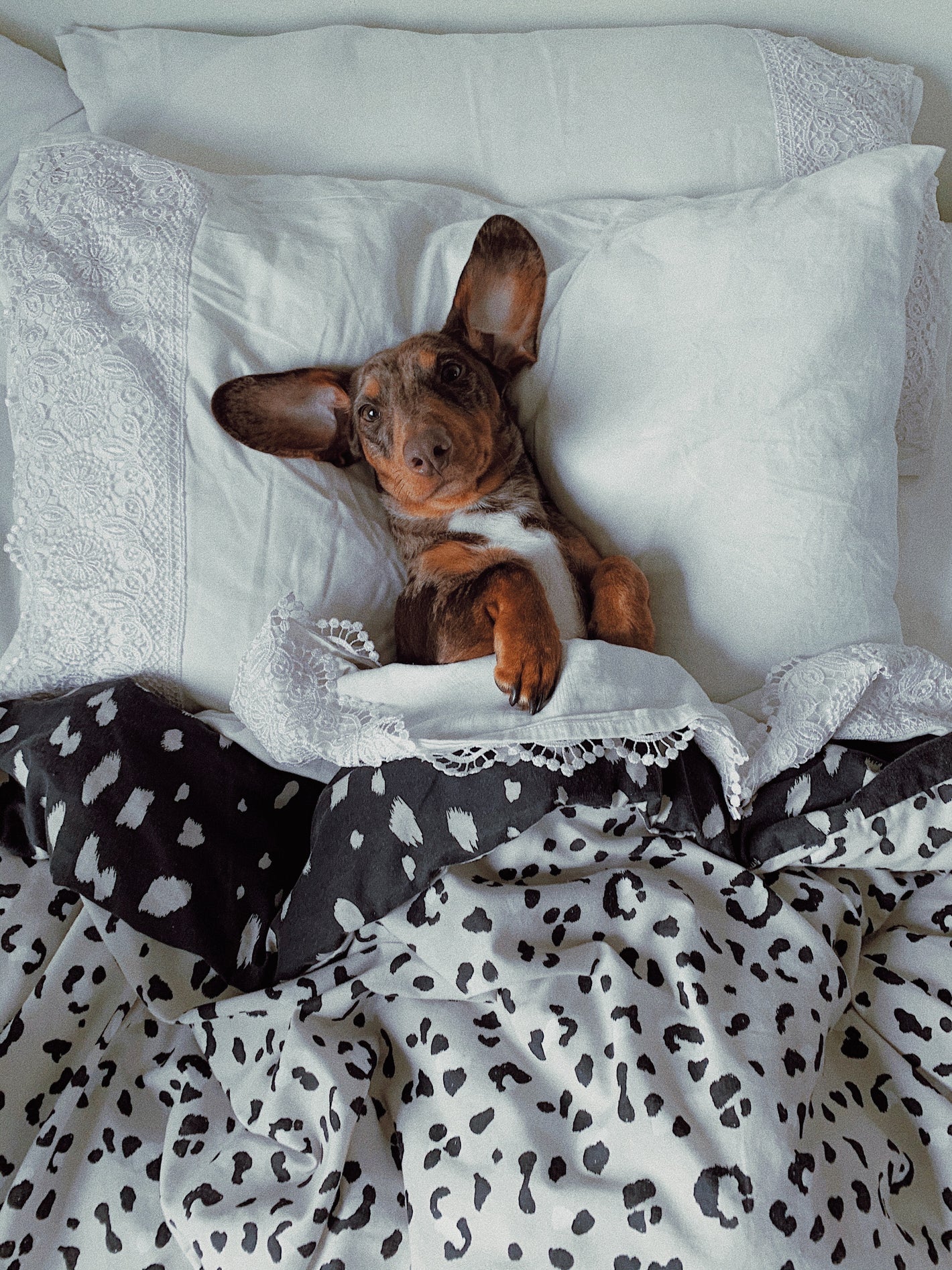Cheeky dachshund and the reason Tones by Kyra began. Professional blanket burrower.